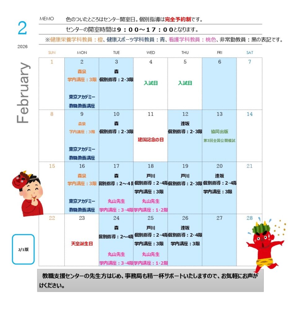 資料閲覧や教採の相談なども、予定が合いましたらぜひご利用ください。